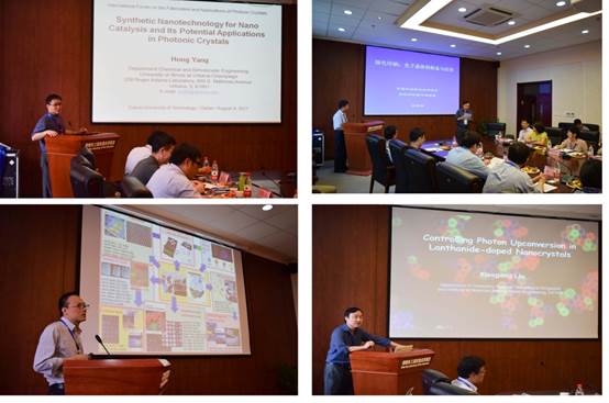 美国伊利诺伊大学杨宏教授、新加坡国立大学刘小钢教授、中国科学院化学所宋延林研究员、东南大学的顾忠泽教授、南京工业大学陈苏教授、中科院合肥固体所李越研究员、北京印刷学院李路海教授、浙江理工学院邵建忠教授、东华大学葛邓腾教授、大连理工大学陆安慧教授、唐炳涛教授等十几位知名专家学者,以“光子晶体构筑与应用”为主题,分别作了内容丰富精彩的报告。杨宏教授报告题目为“Synthetic Nanotechnology for Nano Catalysis and Its Potential Applications in Photonic Crystals”,为大家介绍了纳米结构控制的相关理论研究及其在催化、光子晶体领域的应用;刘小刚做了“Controlling Photon Upconversion in Lanthanide-doped Nanocrystals”报告,介绍了稀土上转换发光材料的构建与应用;宋延林教授做了题为“绿色印刷:光子晶体的制备与应用”的报告,顾忠泽教授做了题为“光子晶体及在生物医学中的应用”报告,陈苏教授做了题为“基于微流控技术制备光子晶体”的报告等。精彩纷呈的报告分别从制备和应用等方面向大家展示了光子晶体的独特魅力。