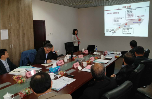 大连理工大学樊江莉教授代表项目完成单位向与会专家介绍了项目的发展情况并做了应用工作和技术报告,杜健军教授做了项目的查新报告和检测报告,迈瑞生物医疗电子股份有限公司体外诊断部李朝阳总经理做了项目的经济分析报告和用户报告。