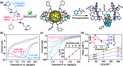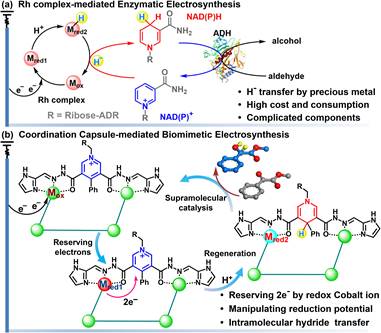图1. (a)贵金属Rh介导的酶促电合成;(b)配位胶囊介导的仿生电合成