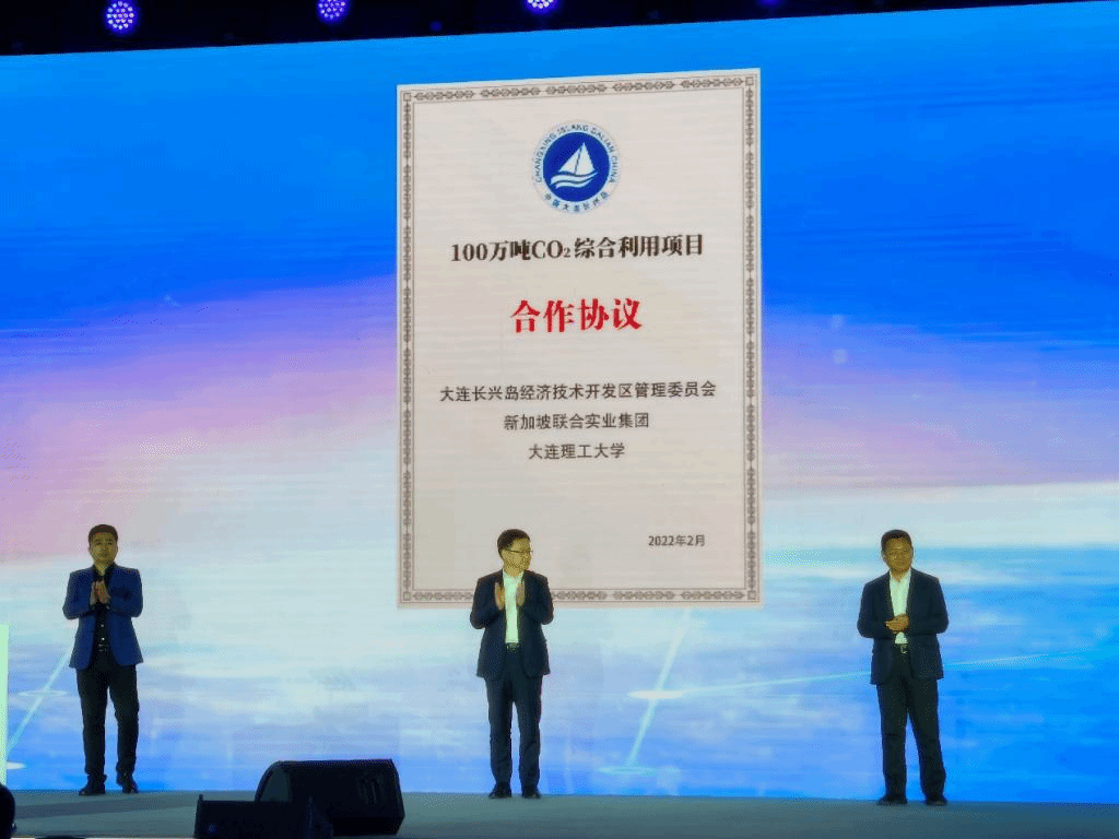 我校作为项目主要签约方,精细化工国家重点实验室主任彭孝军院士,副主任高岩教授,及项目组成员张永春、陈绍云老师出席。彭院士一行在签约后第一时间与大连长兴岛管委会及新加坡联合实业集团进行了深度的项目规划交流,初步明确了未来大规模碳捕集与利用及封存的产业链规划方向。
