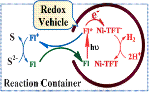硫化氢一种无色有害气体,能在空气中燃烧,对人类有剧毒,对金属设备有腐蚀性。实现硫化氢气体的转化与资源化具有重要的研究价值。利用太阳能等可再生能源通过光催化实现硫化氢分解为氢气和单质硫是最为理想的策略。在硫化氢分解系列研究中,分解产物多倾向产生Sn2-,而不是单质硫,影响体系的分解效率和产物的进一步利用。段春迎团队聚焦于通过金属有机多面体配合物的空腔内部的限域效应对反应体系的催化效率和反应产物进行定向调控。通过体系的限域效应模拟生物酶的主客体催化过程实现高效的催化体系。在限域金属有机笼状结构光催化分解水研究的基础上(J. Am. Chem. Soc.,2015,137, 3967.;Chem. Eur. J. 2016, 22, 18107),通过三臂双齿的刚性配体与四配位的镍组装新型的金属有机八面体结构。八面体的限域空腔能够实现对光敏剂的主客体包和,在包和的超分子体系中通入硫化氢气体在氙灯照射下,体系催化产生氢气,催化剂光催化转化的效率达到了2600。也就是说1mmol的催化剂能够分解约60L的硫化氢气体。同时反应后的体系中还可以进一步得到硫单质。产物为具有应用价值的氢气和单质硫,实现了硫化氢的绿色转化。对光催化过程进一步研究证实,在这个超分子体系光催化过程中,在八面体空腔内部催化分解硫化氢产生氢气,在空腔外部是S2-被氧化为单质硫的过程。硫化氢作为与水相似的模拟物。模拟了光催化水分解的氧化、还原过程,实现了在限域空腔对同一反应体系氧化和还原反应的串联。同时,为模拟光合作用H2O的全分解提供新的思路。
