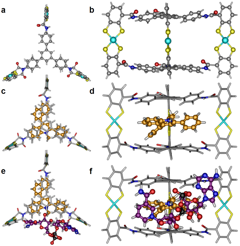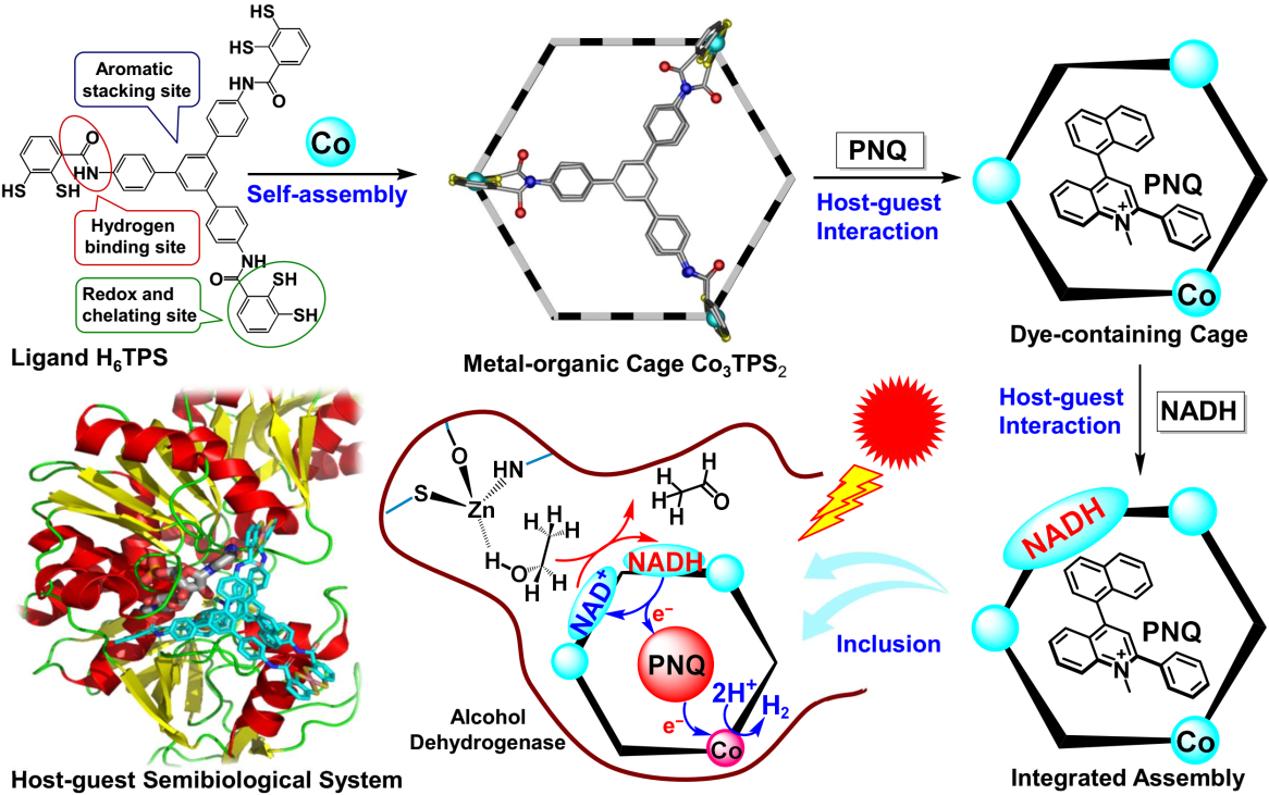 图2. 金属-有机超分子结构与有机染料和辅酶结合示意图