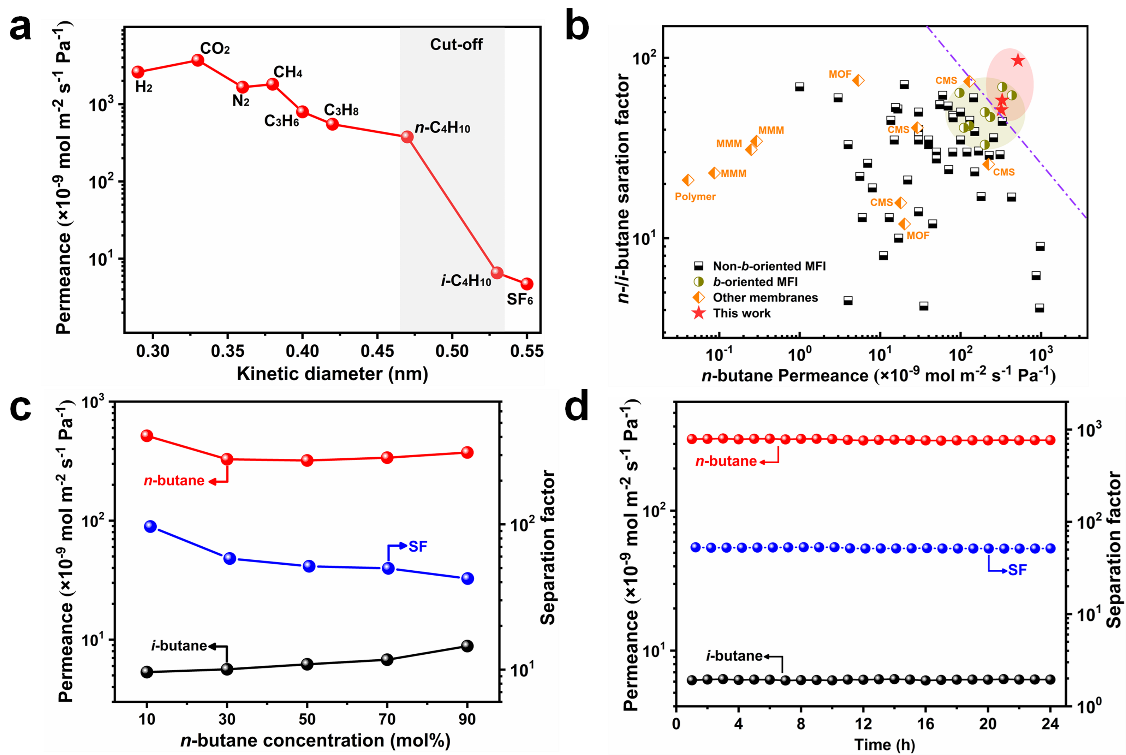 图2. 室温外延生长制备MFI沸石膜的气体分离性能