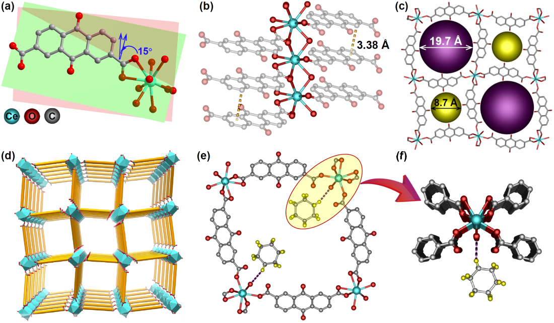 图2. MOF基人工双核铈单加氧酶与其包合共晶的单晶结构