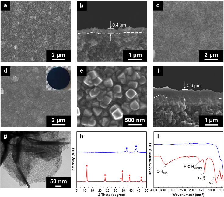 作者首先通过原位水热法制得了厚度为0.4 μm的NiFe LDH过渡层,在N2氛围下焙烧后,采用原位水热法成功制得了平均晶粒尺寸为0.4 μm、厚度为0.6 μm的多晶PB膜。研究表明,焙烧后的LDH过渡层具有更高的反应活性,更有利于制备尺寸均一、连生性好的多晶PB膜。
