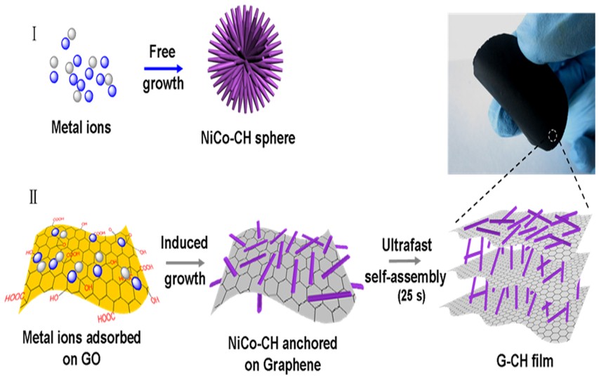 在理想状态下,石墨烯是一种新型的单原子厚度的二维晶体碳质纳米材料,如何在纳米尺度上精细调控前驱体基本结构单元的化学性质,进而基于自组装策略,实现孔隙结构高度发达且机械性能优异的高功能石墨烯及其超轻高弹性宏观体的可控构筑,是一个富有挑战性的难题。该团队在前期研究工作的基础上 (Adv. Mater. 2013, 25, 2219, 作为Research highlight被Nature 2013, 494, 404报道,入选2013年度“中国百篇最具影响国际学术论文”),将化学剪裁与杂原子掺杂的策略有机融合,实现了氮原子掺杂的一维碳纳米管与二维石墨烯纳米带状材料有机复合材料的选控制备,这种新材料作为染料敏化太阳能电池的对电极,显示出优异的性能,相关工作发表在Adv. Energy Mater. (2015, DOI:10.1002/aenm.201500180,期刊内封面);发展了柱撑、化学交联等新技术和新方法,以氧化石墨烯为基本结构单元,实现了石墨烯超快的组装,成果发表在Adv. Func. Mater. (2014, 24, 4915-4921,期刊的Frontispiece;2015, 25, 2109-2116,期刊内封面)。